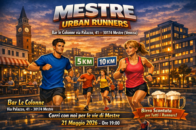 La Mestre Urban Runners ti porta tra le vie di Mestre con due percorsi pensati per tutti: 5 km per chi vuole divertirsi senza troppa fatica, e 10 km per chi cerca una sfida più intensa.